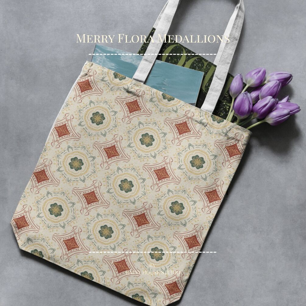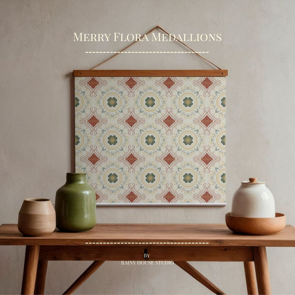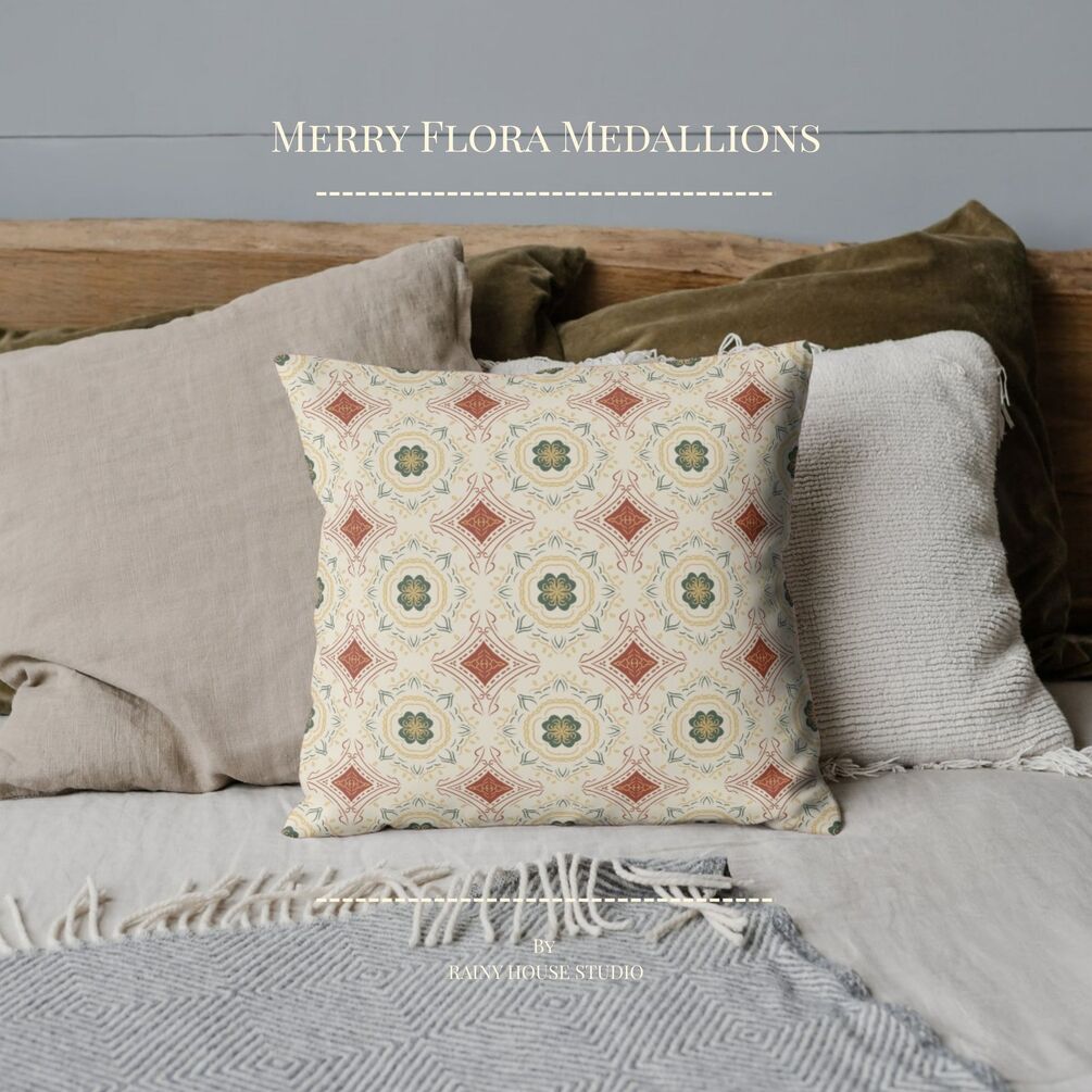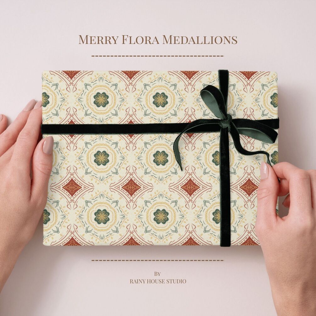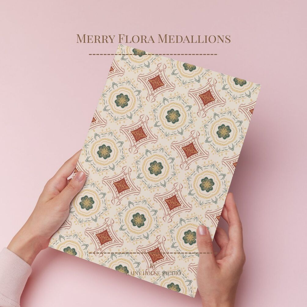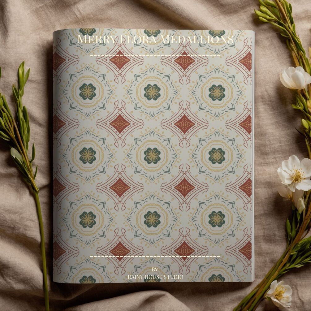 Merry Flora Medallions – Vintage Bow and Foliage Pattern (Digital Download) - PNG