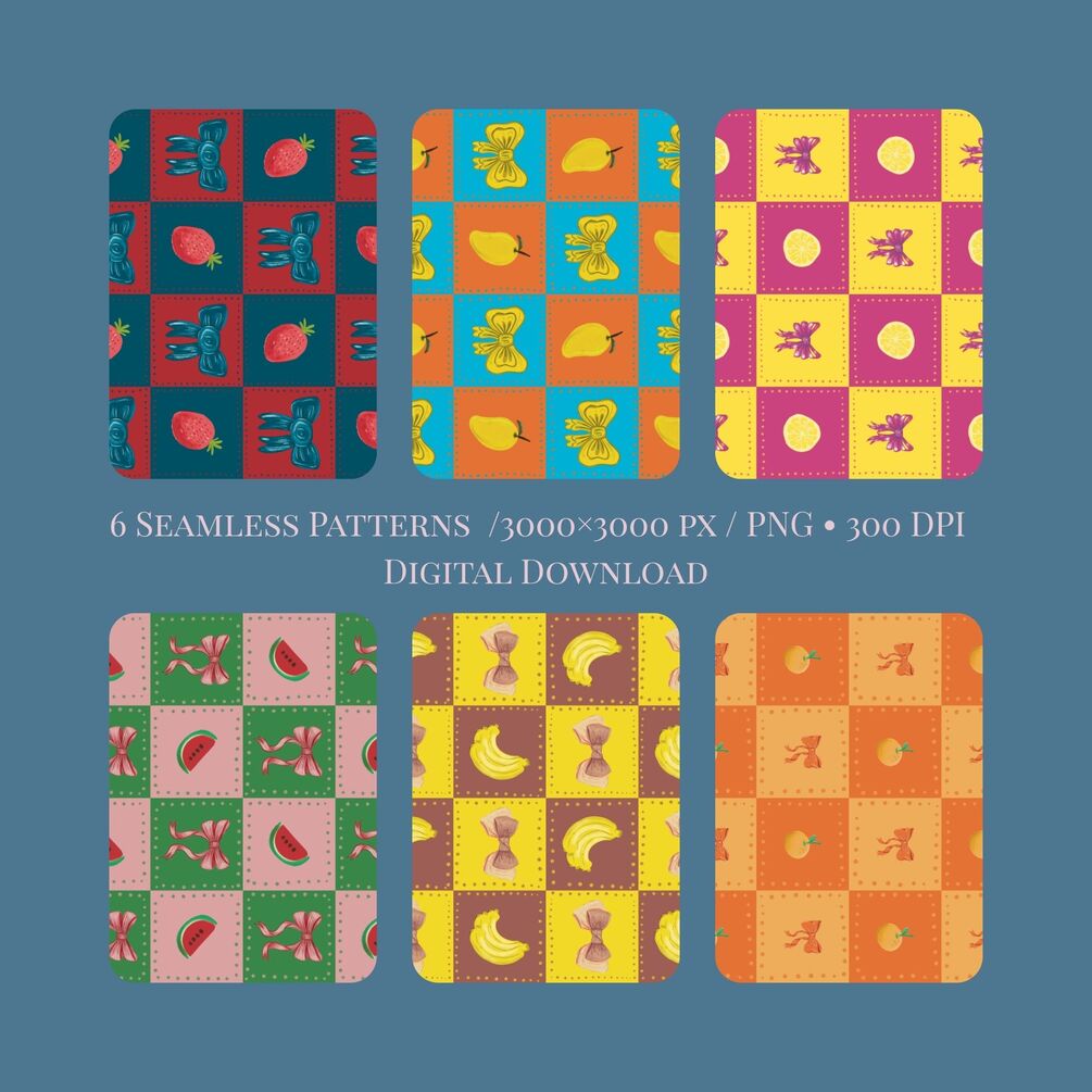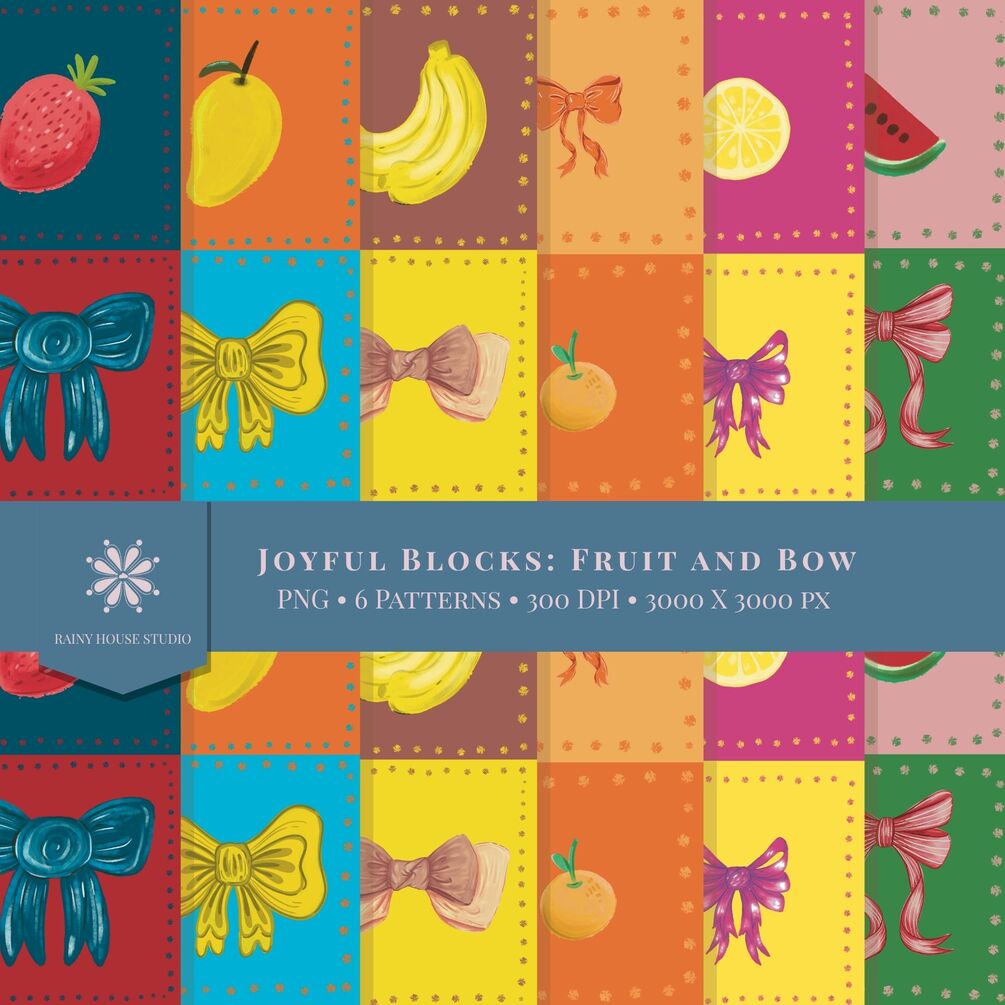 Joyful Blocks: Fruit and Bow Collection-Seamless Patterns | Digital Download- 300 DPI